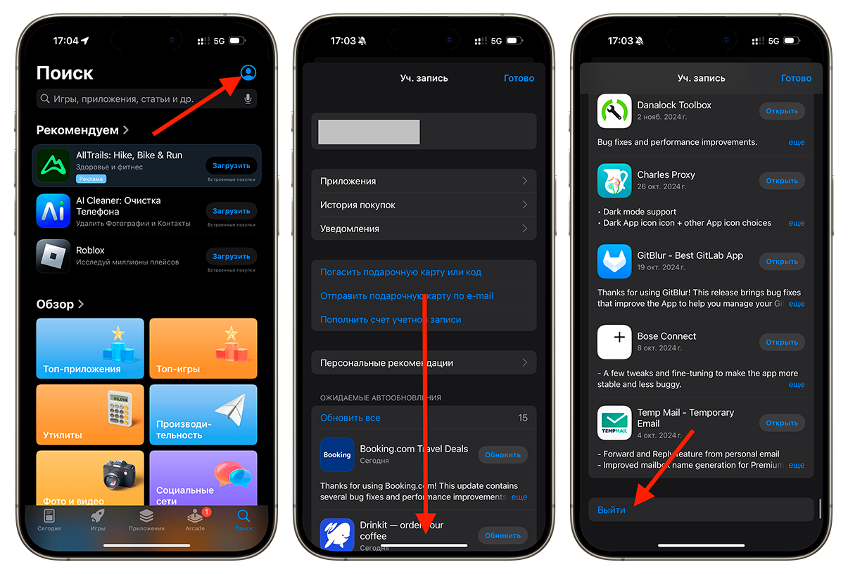 1. Нажмите на иконку профиля в App Store